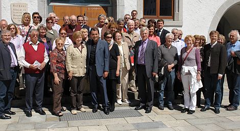 Die Gäste aus Burghausen vor dem Neumarkter Rathaus.