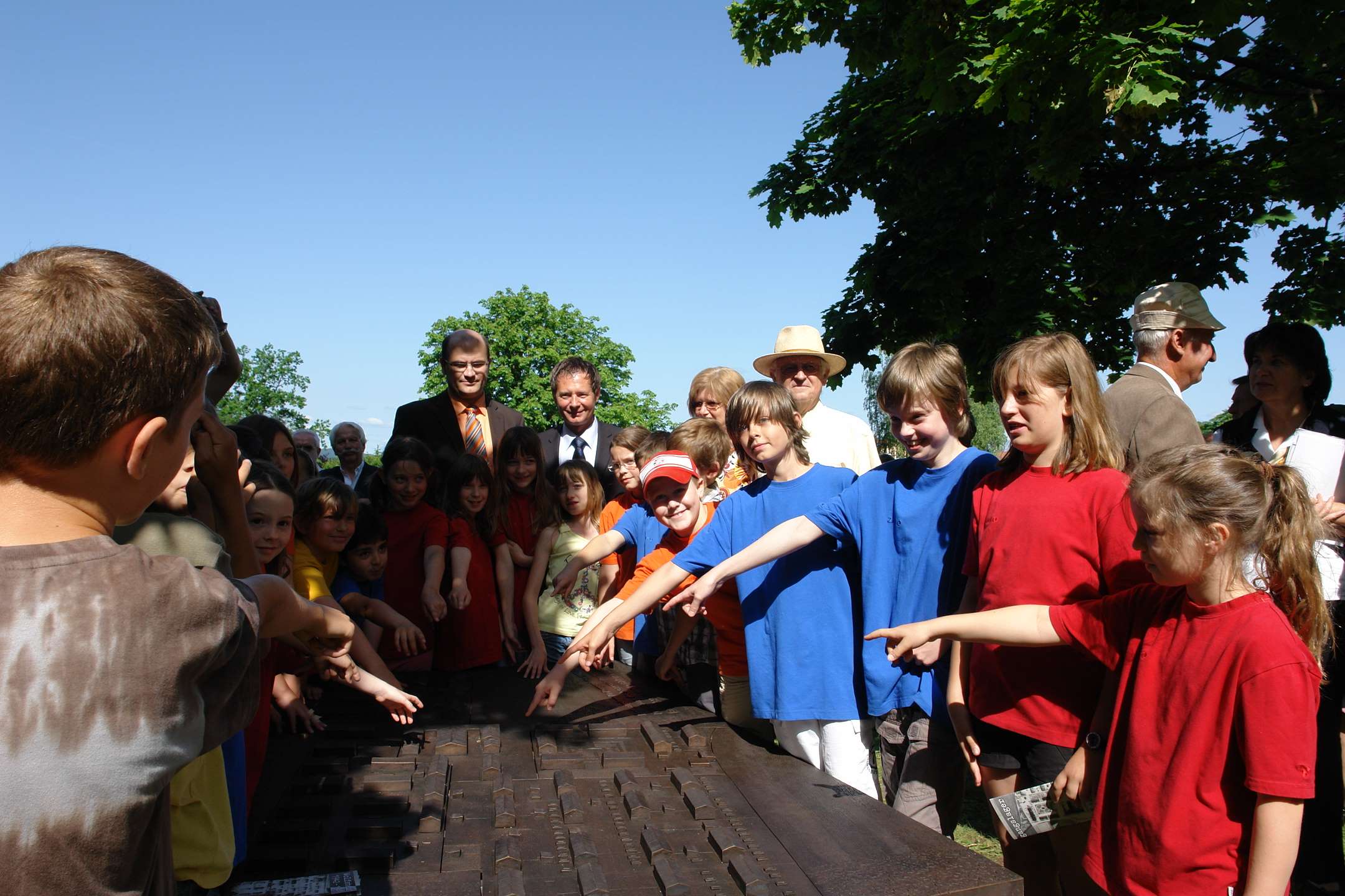 Die 4. Klasse der Schule Wolfstein steuerte ein Lied zur Feier bei, ebenso ein Bewohner Komens, ein früherer Lagerinsasse, der ein Gedicht auf slowenisch vortrug.