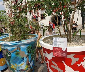 Insgesamt wurden elf solcher überdimensionierter Blumentöpfe von Künstlern aus Neumarkt, vom Leistungskurs des Ostendorfer Gymnasiums und von Künstlern aus den Partnerstädten Issoire und Mistelbach vorgestellt.