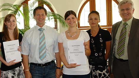 Sie werden ab September die Ausbildung als Verwaltungsfachangestellte bei der Stadtverwaltung Neumarkt absolvieren. Bei der Übergabe der Verträge an Maria Meyer und Susanne Kirsch betonte Oberbürgermeister Thumann, dass die Stadt seit 2005 auch in der Kernverwaltung auf die Ausbildung eigenen Nachwuchses setze. Dies habe sich nicht nur bewährt, sondern diene auch dazu, Aufgabengebiete von altersbedingt ausgeschiedenen Mitarbeitern durch eigene Kräfte zu besetzen, die in der Stadt ausgebildet worden waren.