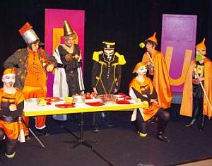 Die französischen Schauspieler präsentieren dann am 17.Juli ab 20.30 Uhr die Geschichte des polnischen Hauptmanns Ubu, dessen Frau ihn zwingt, die Königsmacht einzunehmen. Eine Parodie auf Shakespeares Macbeth - grotesk, aber auch immer ironisch und humorvoll.