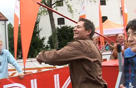 Speerwurf am Residenzplatz: Der Oberbürgermeister macht es vor.