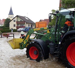 Bei Regenmengen von rund 90 Liter pro Stunde war die Ortsmitte von Hausheim ein einziger See und in Berg hatte die Feuerwehr mehr als 30 Einsätze zu bewältigen.