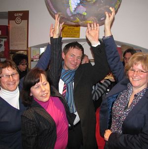 Die zahlreichen Gäste, unter ihnen OB Thomas Thumann, Monsignore Richard Distler und Dekan Norbert Dennerlein, konnten sich über das Angebot an Info-Materialien zu den Themen des Fairen Handels, zum Klimaschutz, zu Globalisierung und Nachhaltigkeit informieren. Das umfangreiche Sortiment beinhaltet ausführliche Informationen, DVDs, Broschüren, Spiele, Filme – je nachdem, welche Altersgruppe angesprochen werden soll.