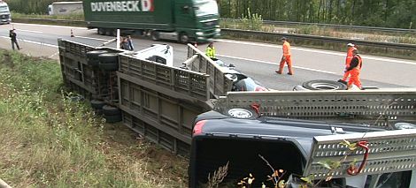 Die Autobahn war mehrere Stunden lang einspurig in Fahrtrichtung Nürnberg gesperrt, das verunglückte Gespann und die Ladung mussten durch Sonderfahrzeuge geborgen werden. Der Fahrer und sein 24jähriger Mitfahrer wurden glücklicherweise nicht verletzt.