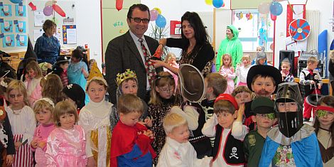 In Deining mußte die Bürgermeister-Krawatte im Kindergarten dran glauben