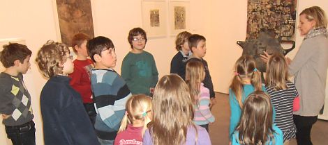 Auf spielerische Weise lernten die 14 Jungs und Mädchen viel Wissenswertes über Plastiken, Stelen, Bilder und Skulpturen sowie die Kunst von Lothar Fischer und Emil Cimiotti.