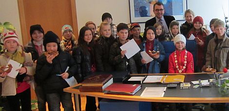 Zum Schluss bedankte sich der Bürgermeister für den Besuch und spendierte allen Schülern eine Breze.