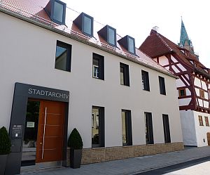 Eine weitere, sehr gelungene Hochbaumaßnahme sei für Oberbürgermeister Thumann der Neubau des Stadtarchivs, dessen Einweihung vor wenigen Wochen gefeiert worden war. Nun konnten die Archivbestände aus den inzwischen beengten Verhältnissen im Dachgeschoss der Bräugassenschule in den Neubau umziehen. Insgesamt 1,6 Millionen Euro habe man "für die neue Heimat unserer gesammelten Stadtgeschichte" investiert.