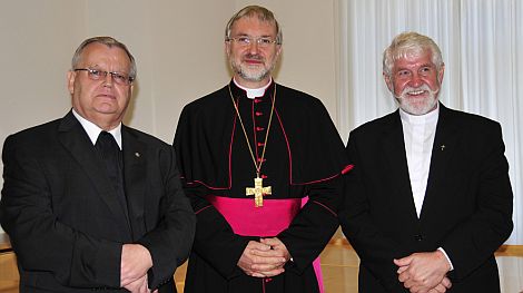 Bischof Gregor Maria Hanke dankte Monsignore Rainer Brummer (links) für insgesamt 15 Jahre Leitungsarbeit im Dienst der Diözese. Domkapitular Franz Mattes machte er Mut für seine neue Aufgabe als Caritasdirektor.