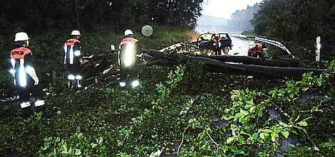 Auch beschädigte Stromleitungen, sowie überflutete Fahrbahnen und vollgelaufene Keller wurden gemeldet.