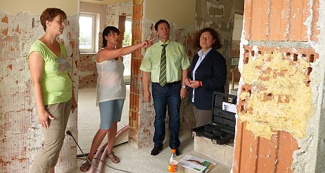 OB Thumann und Stadträtin Gertrud Heßlinger (r.) bei Hochwasseropfern in Deggendorf