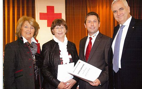 Die beiden langjährigen BRK-Mitarbeiter wurden von BRK-Ehrenpräsidentin Christa Prinzessin von Thurn und Taxis und Landesgeschäftsführer Leonhard Stärk geehrt.