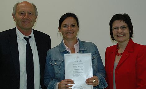 Sie bekam von Stiftungsratsvorsitzender Vera Finn und Vorstandsvorsitzendem Dr. Heinz Sperber die Ernennungsurkunde samt einem Präsent überreicht.