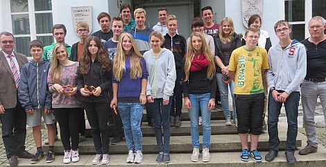 Bürgermeister Alois Scherer mit den Entlassschülern der Mittelschule Deining und dem Klassenlehrer Norbert Schwarz
