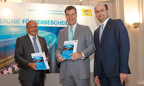 NEUMARKT. Finanzminister Markus Söder übergab an die Gemeinden Deining und Breitenbrunn Breitband-Förderbescheide über 420.000 Euro.