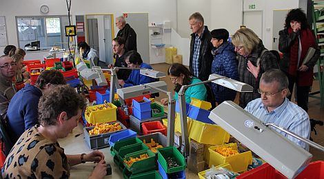 Nach einer kurzen Begrüßung durch Geschäftsführer Andreas Moser, den Werkstattrat in Person von Petra Kahramanoglu und Heike Schmalhaus, die Vertrauensperson des Werkstattrats, im Foyer der Zweigwerksatt im Winnberger Weg folgte die Besichtigung von verschiedenen Arbeitsgruppen. Die Besucher erhielten einen Einblick in die Arbeit der Schreinerei, der Elektromontage, der Montagegruppen und der Druckerei.