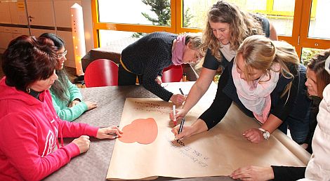 Zu Beginn des pädagogischen Tages referierte Sozialpädagogin Regina Hüttinger, Fachsozialarbeiterin für Klinische Sozialarbeit und Supervisorin, zum Thema Elternarbeit. Im weiteren Tagesverlauf durfte das Personal im Rahmen eines „World Cafe“ verschiedene Fragestellungen zum Thema Elternarbeit bearbeiten. Durch diese Methode findet ein kollegialer Austausch und somit eine Wissenserweiterung bei den Teilnehmern statt.