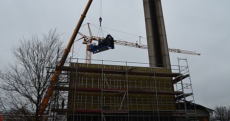 Am Montag schwebte der tonnenschwere Motor über dem Klinikum