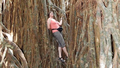 Die "Würgefeige" beginnt ihr Wachstum in einer Baumkrone und schickt dann ihre Wurzeln zum Boden - nach und nach erwürgt die Feige ihren Stammbaum und steht letztendlich auf ihren eigenen Wurzeln. Dieser Baum ist inzwischen etwa 500 Jahre alt, schreibt Heidi Rackl