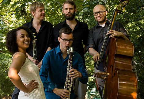 Am 30. Januar um 20 Uhr bringt das Sanguin Quintett mit einer spannenden Kombination aus Bassklarinette/Saxophon und Gitarre rhythmisch komplexe Kompositionen und Arrangements in den Keller der Neumarkter Residenz. Die aus Kamerun stammende Sängerin Sang Ganyonga singt einen Großteil ihrer Texte auf Mungaka, Sangs Muttersprache. Getragen von einer energetischen und spontan interagierenden Rhythmusgruppe präsentiert die Band eine Musik, die Leidenschaft und Lebensfreude versprühen soll: Modern Jazz mit einem Hauch von Afrika.