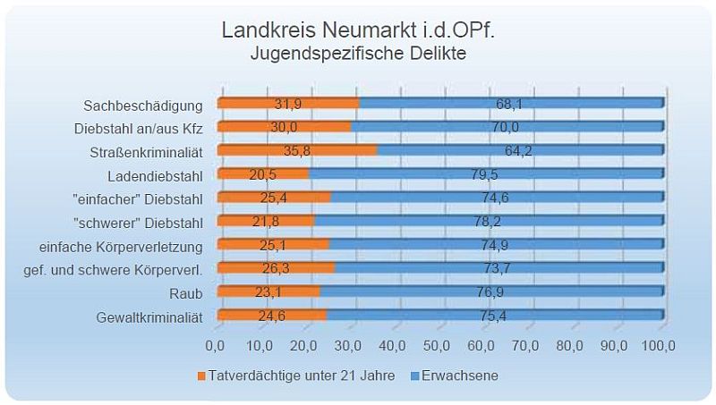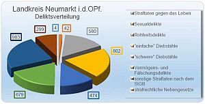 Bei der Pressekonferenz im Regensburger Polizeipräsidium wurde auch die Verteilung der Straftaten auf die einzelnen Gemeinden des Landkreises besprochen. Und hier löste Parsberg überraschend die bisher immer an der Spitze stehenden Große Kreisstadt ab: Neumarkt fiel sogar hinter Velburg auf Platz 3 zurück. In Parsberg wurden über fünf Straftaten pro 100 Einwohner registriert, in Velburg 4,8 und im Neumarkter Stadtgebiet sank der Anteil von 4,9 auf 4,5.