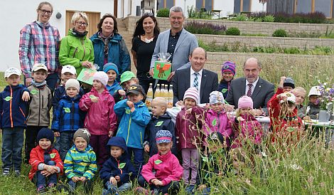 Die Vertragsunterzeichner hatten am Mittwoch gleich die Gelegenheit, die Umweltbildungsarbeit des Landschaftspflegeverbands in der Praxis kennenzulernen. Die Kinder des Kindergarten St. Franziskus verbrachten unter dem Motto „Natur mit allen Sinnen erleben“ einen Tag am Habsberg.