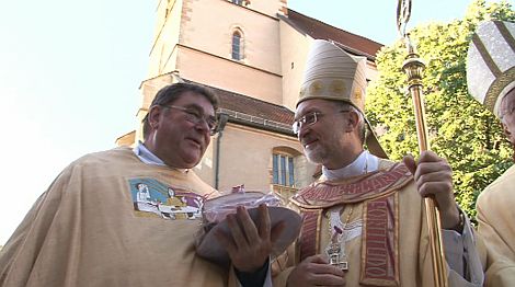 Stadtpfarrer und Domkapitular Norbert Winner erhielt vom Bischof die Urkunde zur Münster-Erhebung