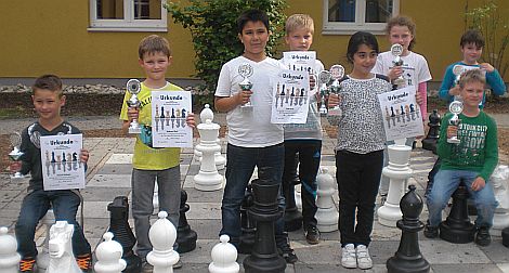 Bei der folgenden Siegerehrung gab es Für alle Teilnehmer eine Urkunde und einen Sachpreis, die besten Drei sowie das beste Mädchen jeder Gruppe nahmen obendrein stolz ihre Pokale entgegen. Konrektorin Christine Fersch betonte, wie sehr Schach das Schulleben bereichere, und freute sich über die vielen Kinder, die mit großem Spaß und Eifer dem „Königlichen Spiel“ nachgehen.