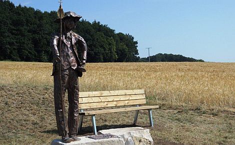 NEUMARKT. Der "Wanderer am Jakobsweg" - ein Kunstwerk aus Kupfer soll bei Unterölsbach an den Verlauf des berühmten Wege-Netzes erinnern.