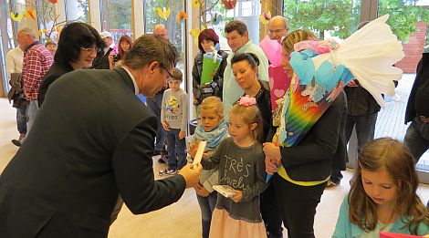 NEUMARKT. Der Neumarkter Oberbürgermeister hat 16 ABC-Schützen in der Grundschule Hasenheide an ihrem ersten Schultag mit einem kleinen Geschenk begrüßt.