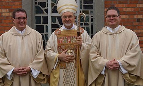 Bischof Hanke und die beiden neugeweihten Diakone Udo B. Jung und Ulrich Wiechers (r.)