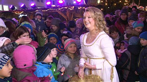 Oberbürgermeister Thumann und ein "Christkind" gaben den Startschuß. Kinder erhielten kleine Geschenke.