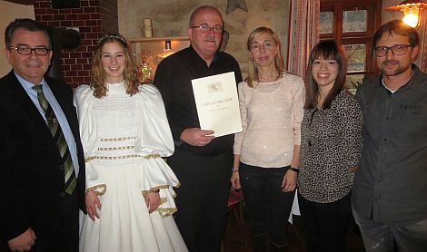 Er erhielt zum Dank ein Weinpräsent aus der Partnergemeinde Eggenburg sowie eine Ehrenurkunde des Freistaates Bayern und einen Scheck überreicht.