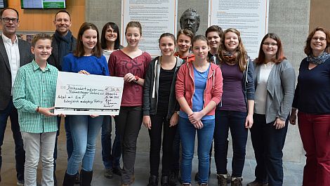 Schüler des Willibald-Gluck-Gymnasiums überreichten einen Scheck
