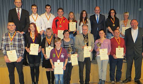 39 Bronze-, 42 Silber- und 19 Goldmedaillen wurden bei der Feierstunde an Einzelsportler und 16 Bronze-, sieben Silber- und drei Goldpokale an Mannschaften verliehen.