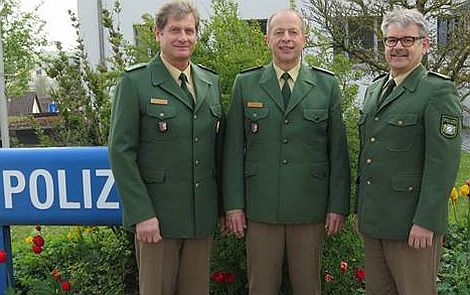 Vor dem Dienstgebäude (v.l.): Erster Polizeihauptkommissar Peter Gotteswinter, Polizeihauptkommissar Wolfgang Eichenseer und Polizeivizepräsident Michael Liegl