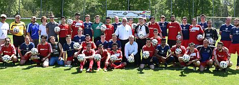 Die Bürgermeister begrüßten die Mannschaften und würdigten das wichtige Engagement der beiden Vereine in Sachen Integration durch Fußball.