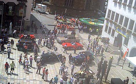 Zuschauer auf dem Weg zur Oldtimer-Ausstellung in der Neumarkter Innenstadt