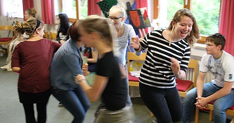 Am Ende hatte sich jeder Betreuer und jede Betreuerin eine eigene Tunika und dazugehörige Accessoires hergestellt. Schließlich wollen sie das auch mit ihren Kindern machen. Mittelalterlicher Schmuck, Tonen und Töpfern, Arbeiten mit Holz oder das Spiel der Gaukler und Fakire wird im Vorfeld der Ferienspiele noch geprobt, damit die Kinder in den Sommerferien keine Langeweile befürchten müssen.