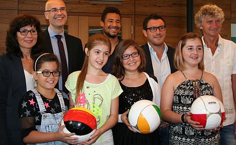 Jede Schule bekam drei Fußbälle. Ein vierter, den die Stadtwerke Neumarkt im Rahmen des "Fair Trades" über den Eine Welt Laden beziehen, wird noch nachgereicht.