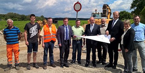 Nun machten sich Landrat Willibald Gailler, Staatssekretär Albert Füracker, Bürgermeisterin Carolin Braun und die zuständigen Mitarbeiter des Landratsamtes Michael Gottschalk, Erwin Weikert und Stephan Meier an der Baustelle ein Bild vom Baufortschritt. Dabei hob der Kreischef die kontinuierlichen Investitionen des Landkreises in die Verbesserung des Kreisstraßennetzes hervor. Man vernachlässige das 343 Kilometer langes Straßennetz nicht, sondern investiere seit Jahrzehnten in die Verbesserung. Deshalb verfüge man im Landkreis über sehr gute und verkehrssichere Straßen.
