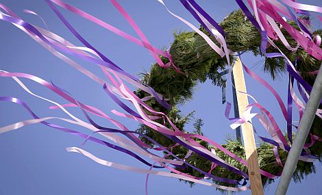 Schön, wenn er im Wind weht: Wo ein Richtkranz ist, da wurde gebaut. Allerdings führt längst