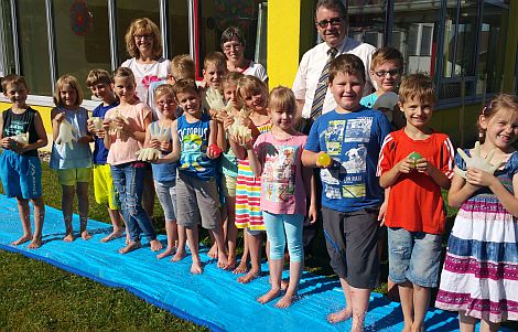 Die Schüler hatten schon bisher jede Menge Spaß bei den verschiedenen Aktivitäten. Bürgermeister Alois Scherer machte sich vor Ort ein Bild von der Betreuung. Die Ferienbetreuung kann relativ günstig angeboten werden, da die Gemeinde die Kosten zur Hälfte übernimmt.