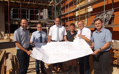 „Davon werden sowohl die Grundschule wie auch das Sonderpädagogische Förderzentrum profitieren“, freuten sich Landrat Willibald Gailler und Bürgermeister Josef Bauer, als sie sich zusammen mit Kreiskämmerer Hans Ried und Liegenschaftsreferent Markus Mederer sowie Michael Gottschalk von der Kreisentwicklung vor Ort ein Bild vom Fortschritt der Bauarbeiten machten.
