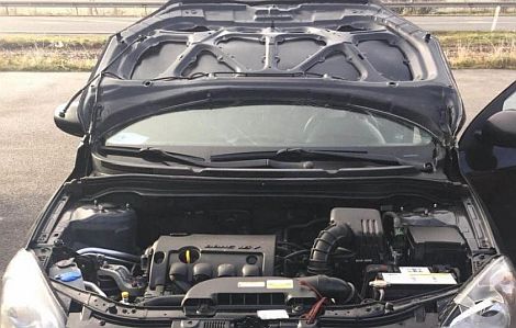 Zuerst versuchte er, die Motorhaube mit einem Schnursenkel zuzubinden. Als dies nicht hielt, fuhr der Mann einfach weiter. Durch den Fahrtwind klappte die Motorhaube dann schließlich komplett hoch und gegen die Windschutzscheibe.