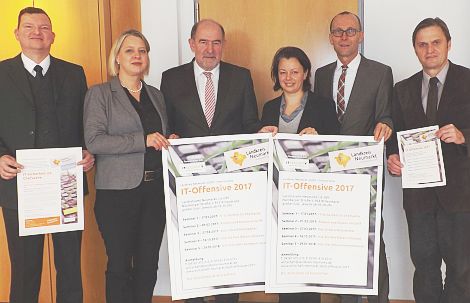 Landrat Willibald Gailler stellte dazu am Dienstag mit Sandra Wiesbeck vom Bayerischen IT-Sicherheitscluster und Monika Schleissing von der Digitalen Gründerinitiative Oberpfalz sowie seinen Mitarbeitern Michael Gottschalk, Michael Endres und Bernd Hofmann das Programm im Landratsamt vor.