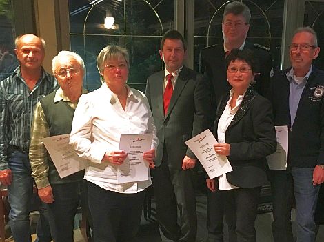 BRK-Kreisbereitschaftsleiter Uwe Suchomel überreichte zusammen mit BRK-Kreisgeschäftsführer Klaus Zimmermann und dem stellvertretenden Bereitschaftsleiter Siegfried Gehr an langjährige BRK-Mitglieder Urkunden und Ehrennadeln.