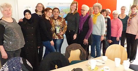 Mahssumeh Bahrami (5.v.l.) berichtete von ihrer Flucht nach Deutschland
