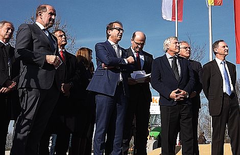Minister Dobrindt mit lokaler Politik-Prominenz an der beginnenden Baustelle